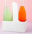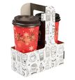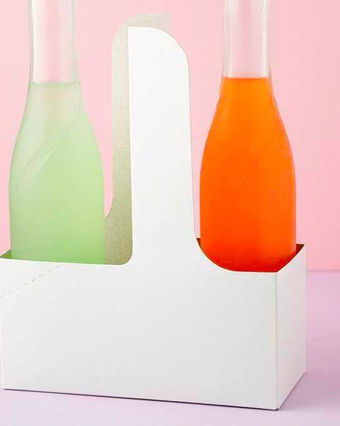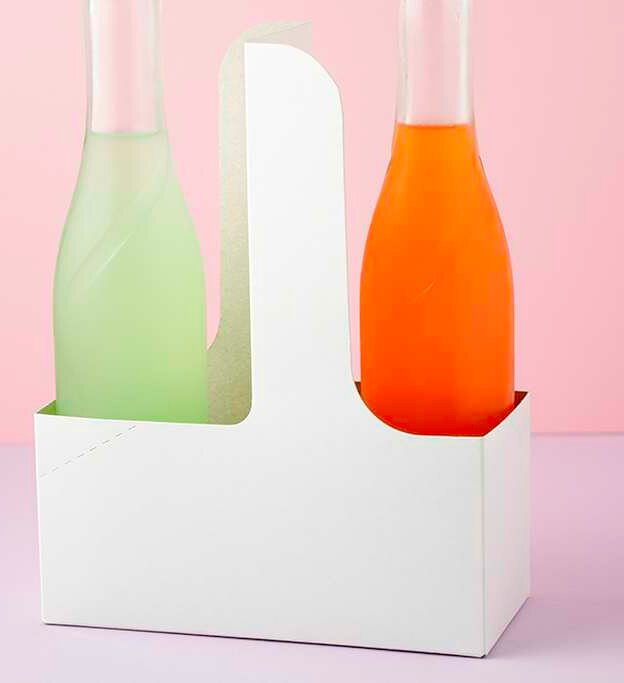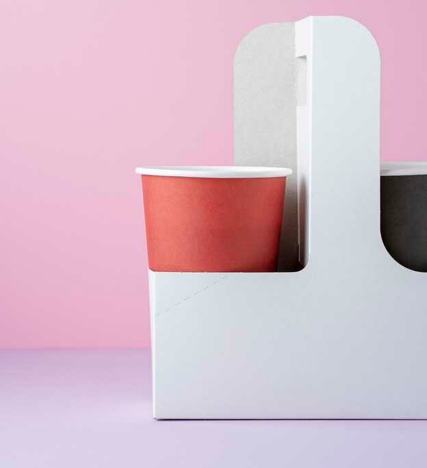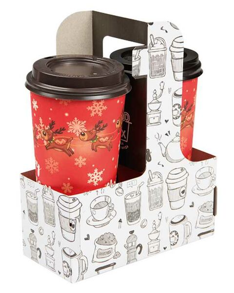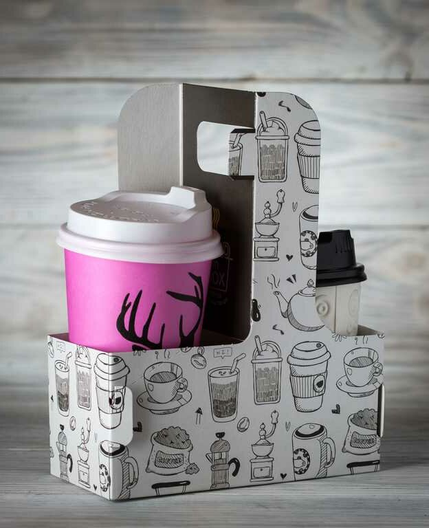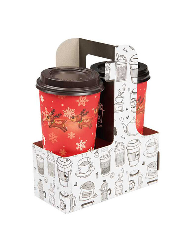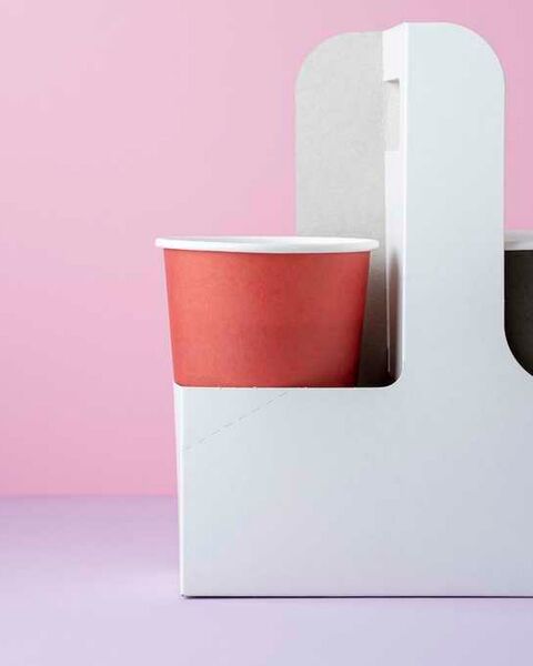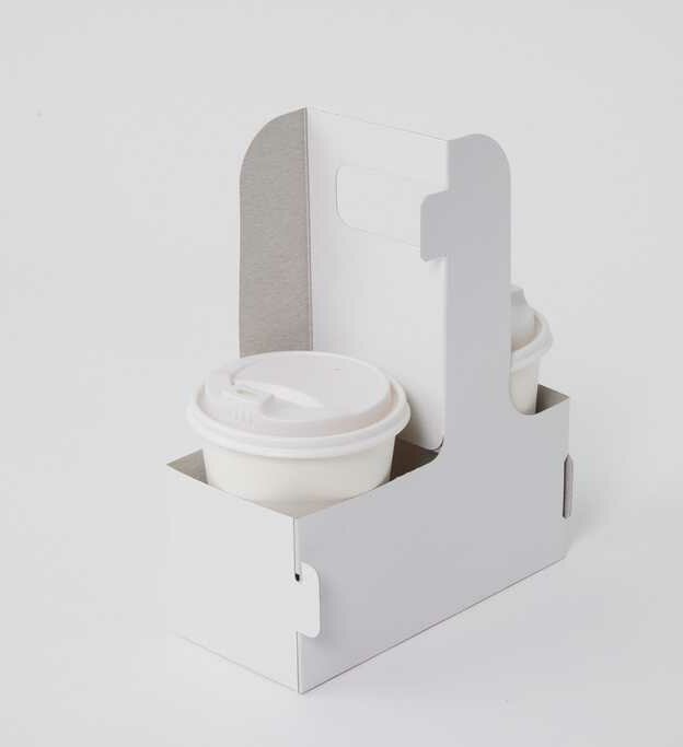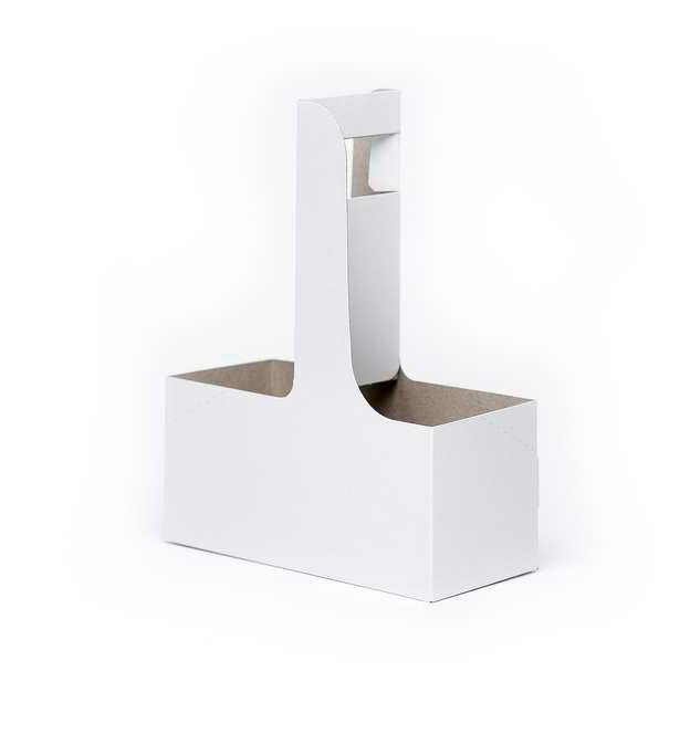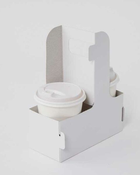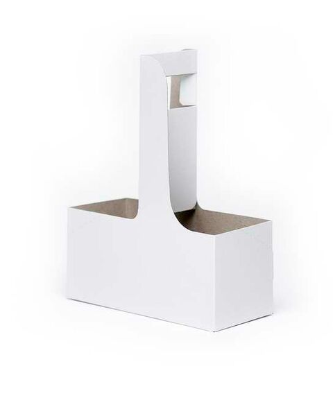 The paperboard carriers for cup drinks with a handle are shipped flat to save space.