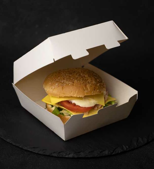 The boxes are greaseproof and great for hot burgers. The built-in lids allow for easy storage of food leftovers.