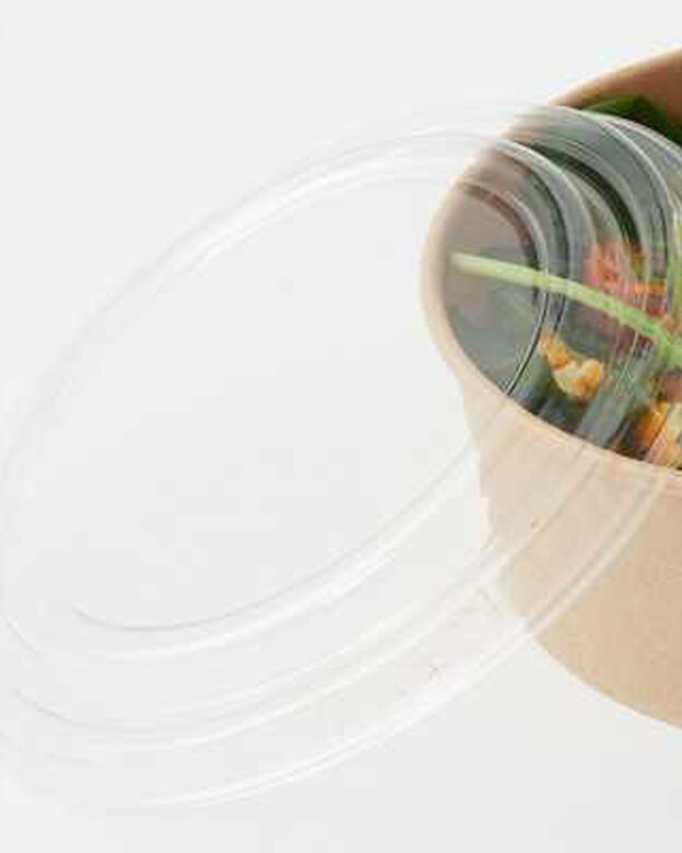 The lids are made from food-grade plastic. Transparency makes it possible for the consumer to evaluate the contents of the salad bowl without opening it.