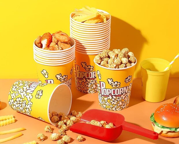Disposable popcorn buckets provide a hygienic and practical packaging solution for selling snacks in cinemas, at festivals, food courts, and large public events. Eco-friendly paper containers simplify service, preserve the taste and texture of popcorn, ensure customer comfort, and help maintain high hygiene standards. High-quality disposable popcorn buckets are essential for businesses that value both operational efficiency and professional presentation.